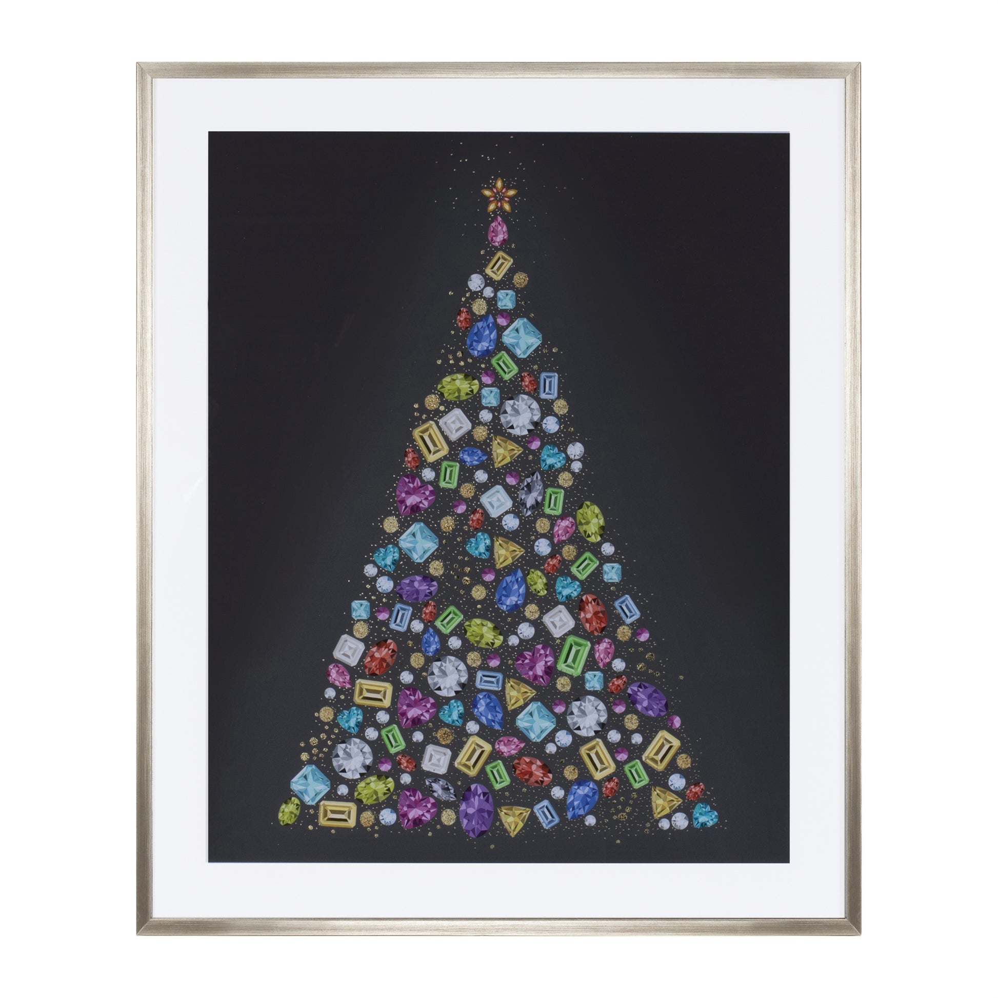 Holiday Jewel Tree Print Under Glass 23.5"H