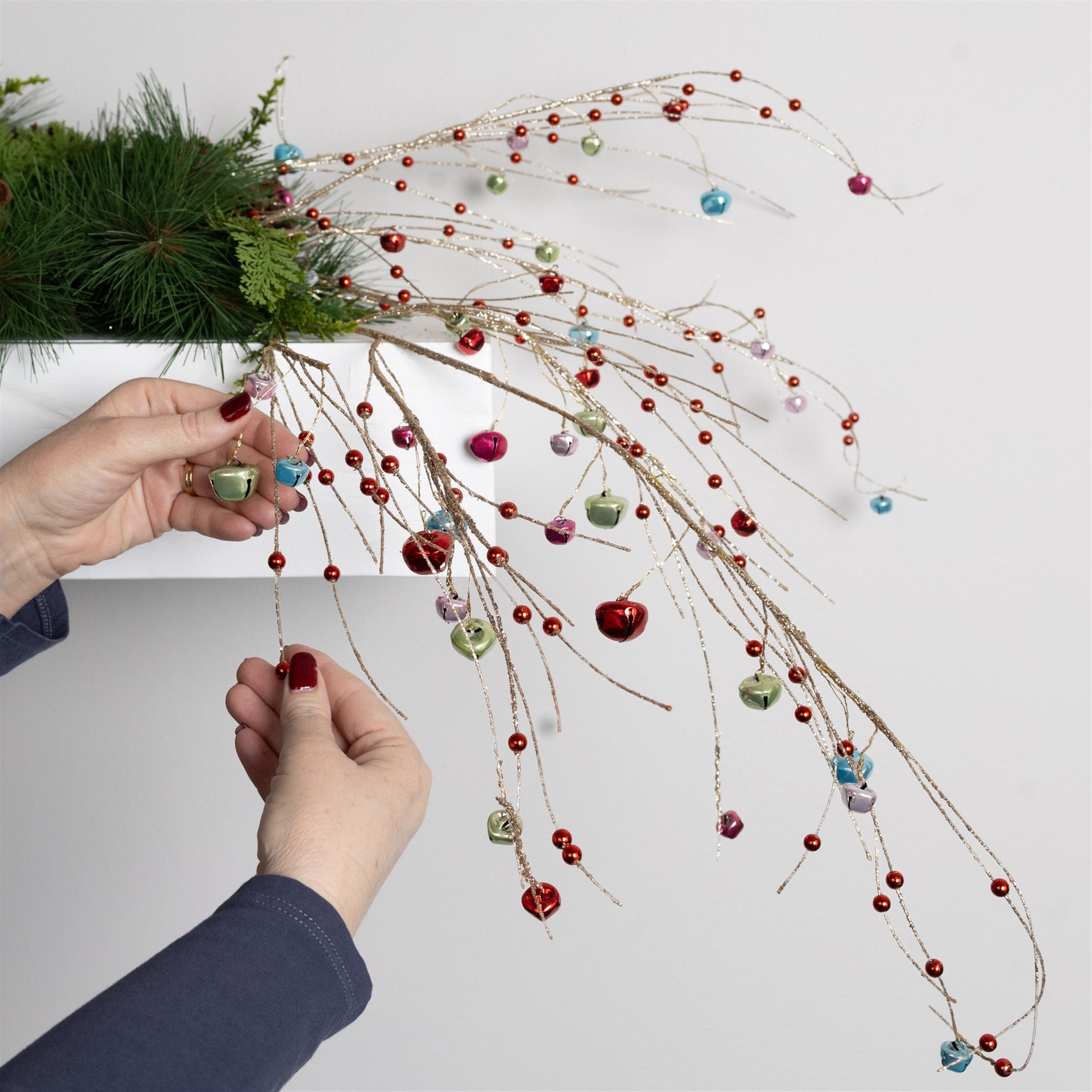 Bring festive cheer to your holiday decor with this elegant Jingle Bell Spray! Standing at 42 inches tall, these sprays add a striking touch to your Christmas tree, holiday porch pot, or seasonal floral arrangement. Designed in wintry gold and red hues, the sprays feature charming jingle bells that create a joyful ambiance. Crafted from high-quality iron, this set is built to last for many holiday seasons. Whether used indoors or in a covered outdoor setting, these sprays are the perfect accent to complete your festive decor. Sold in a set of two matching pieces to create a balanced display in your home.