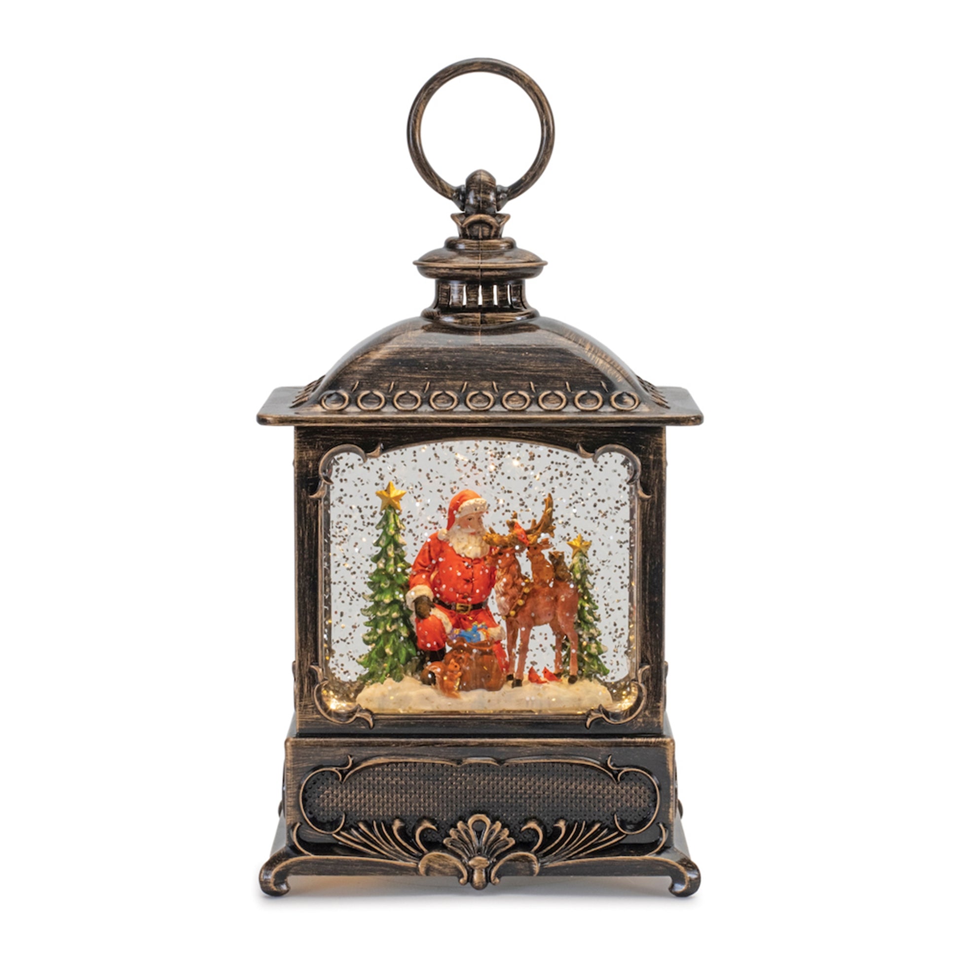 LED Snow Globe Lantern with Woodland Animals 9"H