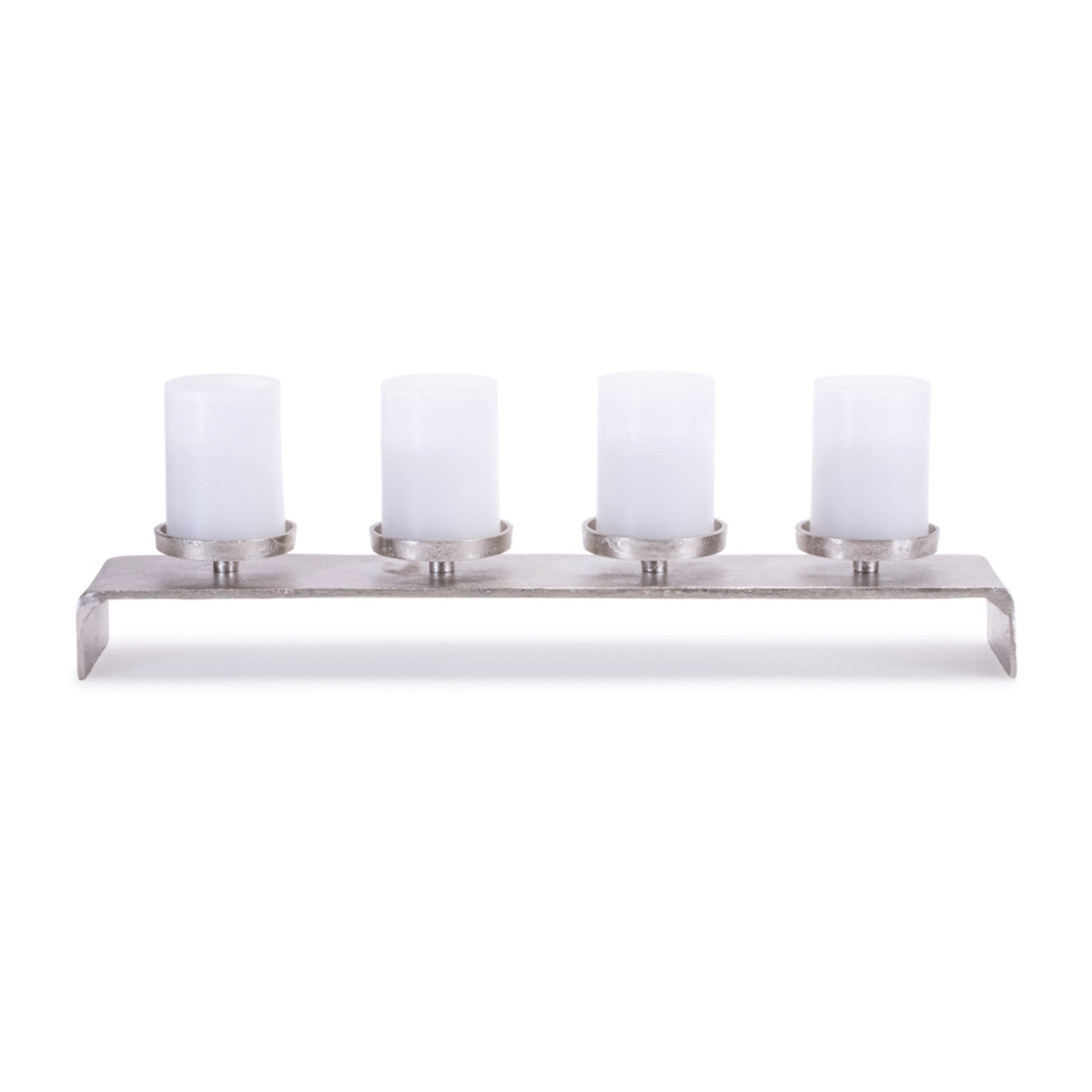 Sleek and modern, this aluminum candle holder brings a touch of contemporary elegance to any space. Designed to hold four candles, it’s perfect for creating a warm, inviting glow on a dining table, mantel, or console. The sturdy metal frame boasts a refined metallic finish, offering both style and durability for year-round display.