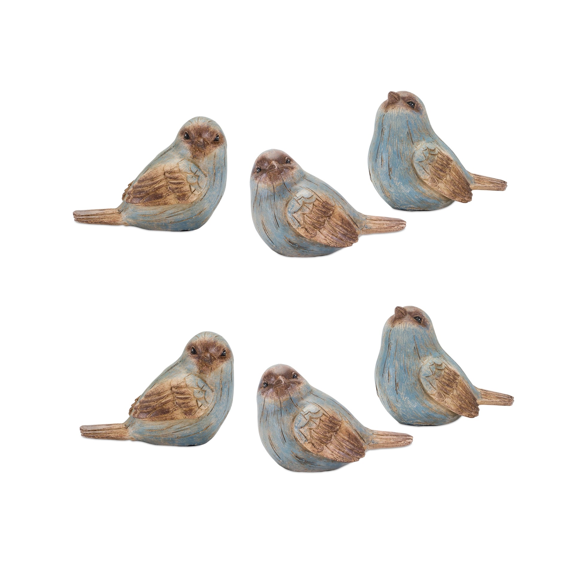 Rustic Blue Bird Figurine with Wood Grain Design (Set of 6)