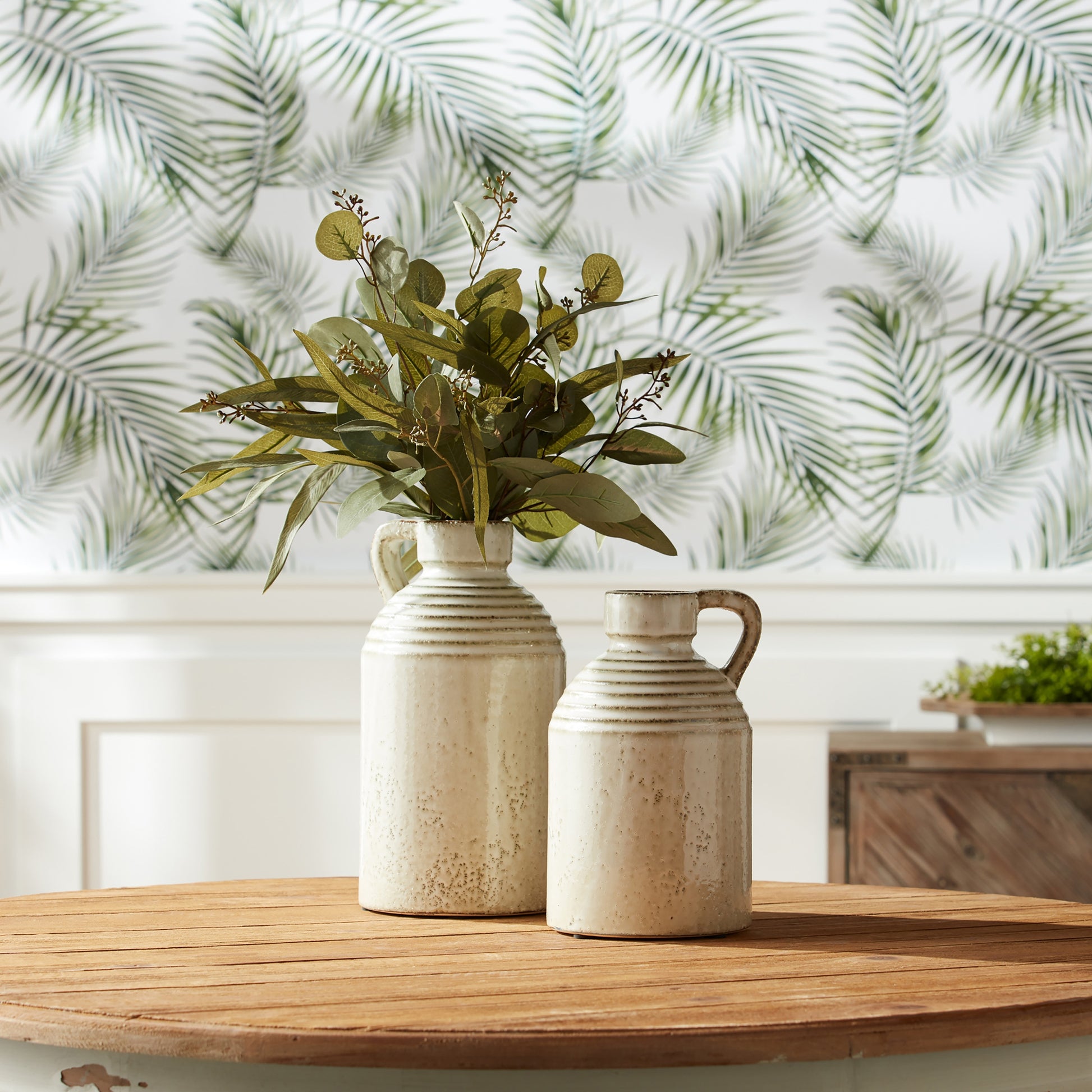 Rustic Ceramic Jug Vase with Washed Cream Finish 11.75"H