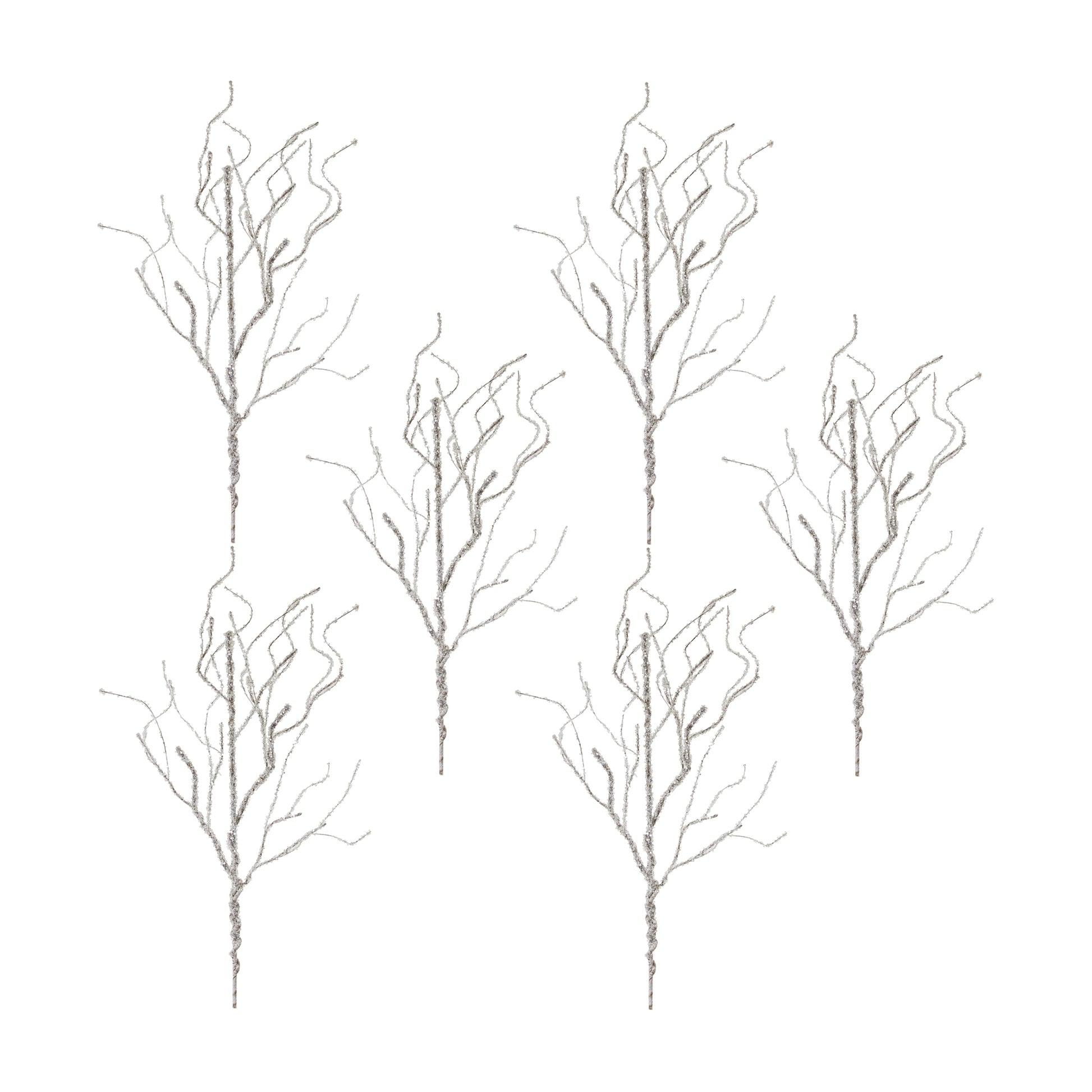 Elevate your holiday decor with this stunning set of Silver Twig Sprays. Designed to add a touch of natural elegance, these shimmering branches are perfect for centerpieces, floral arrangements, and festive displays. The sparkling silver finish beautifully catches the light, creating a magical winter wonderland effect. Made with high-quality plastic, these durable sprays will enhance your seasonal decor year after year. Ideal for both indoor and covered outdoor use, they bring timeless beauty to any holiday setting. Sold in a set of six pieces to make a statement in your holiday seasonal displays.