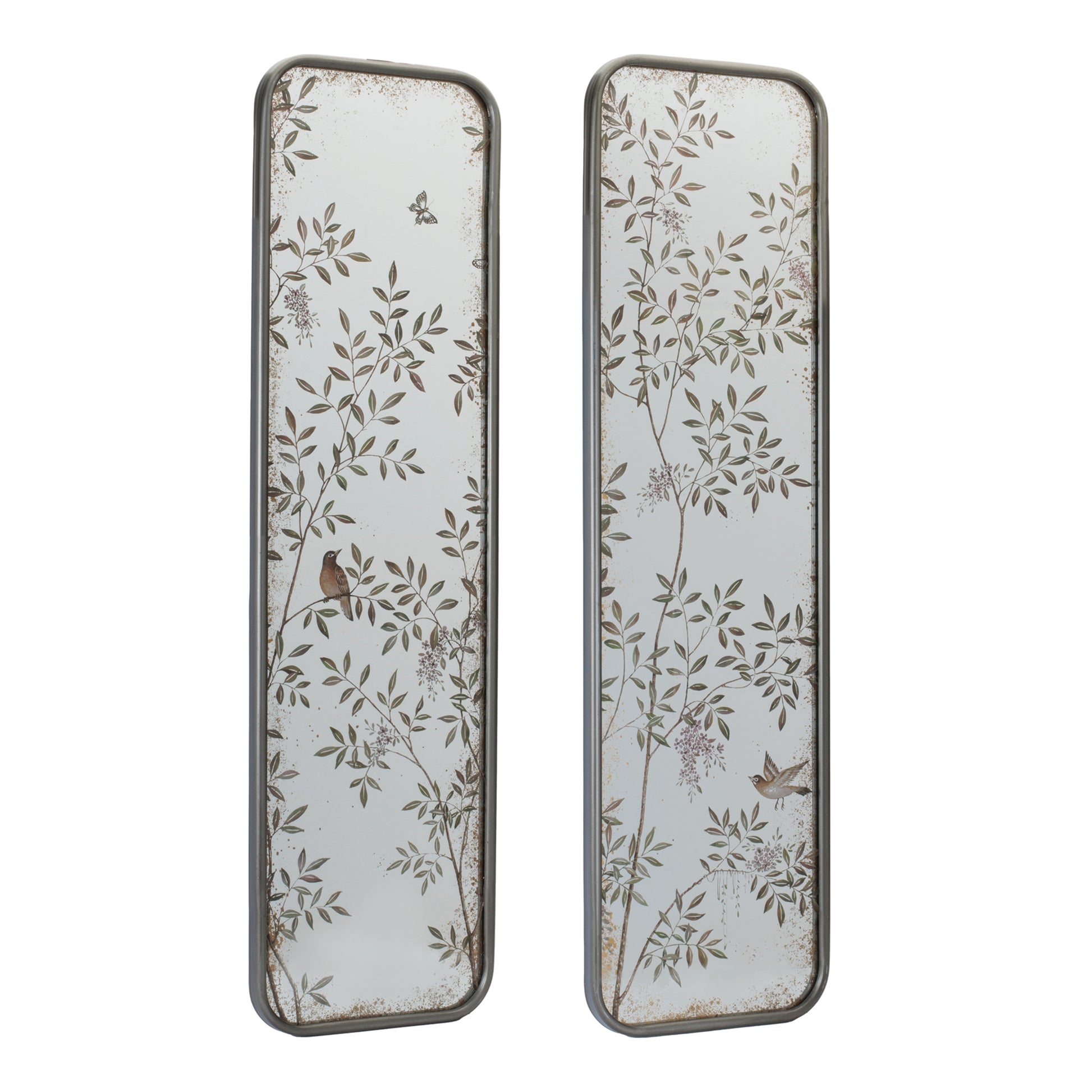 Wall Mirror with Bird and Floral Foliage Print (Set of 2)