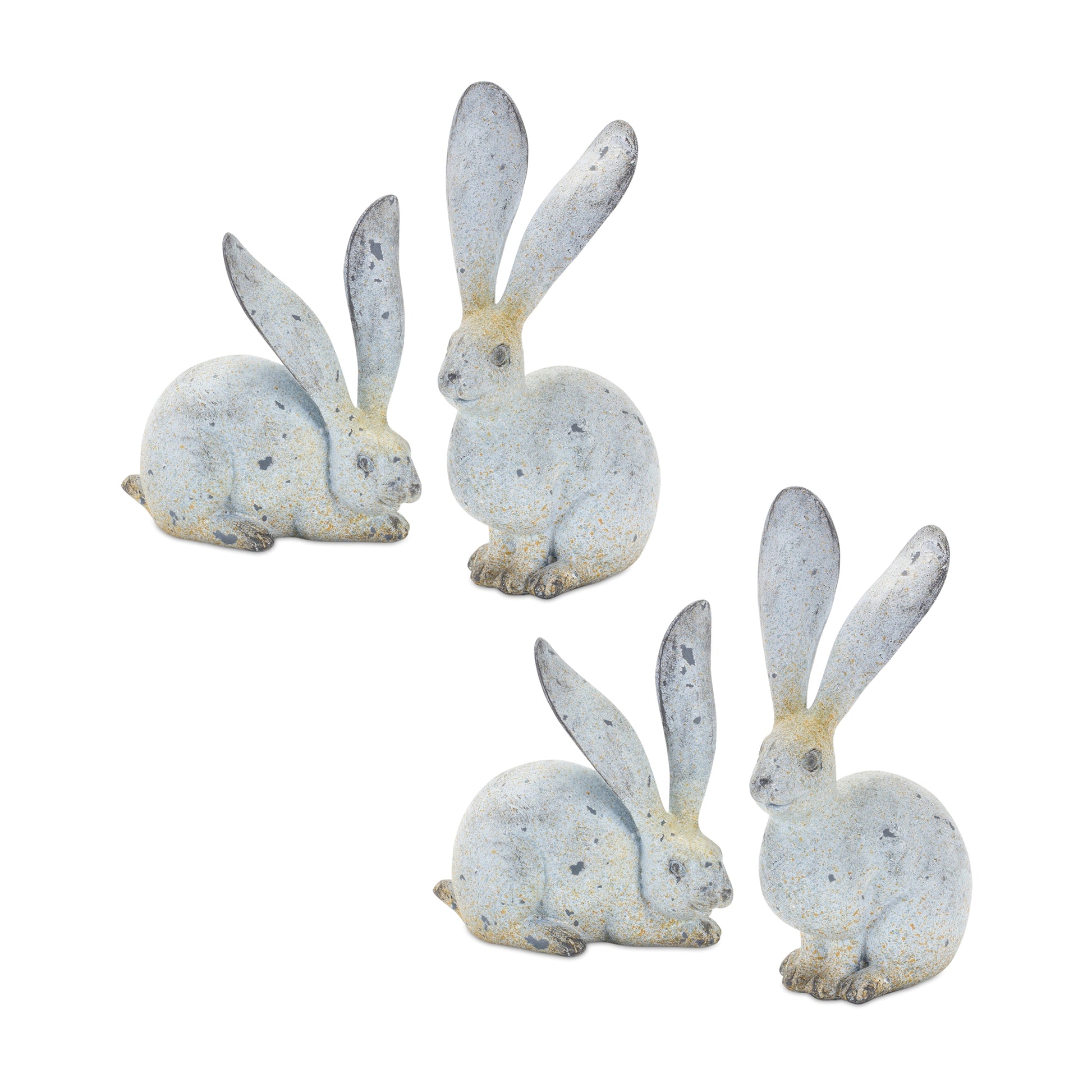 Weathered Stone Rabbit Statue with Distressed Finish (Set of 4)